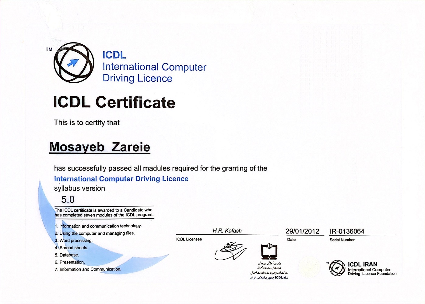 مدرس دورهای ICDL بزرگسالان به مدت 5 سال