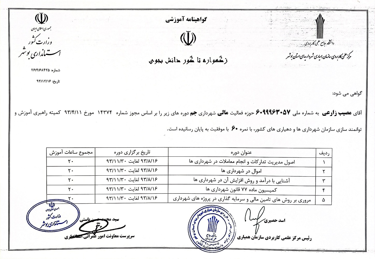 کارشناس واحد مالی و حسابداری شهرداری جم به مدت 4 سال